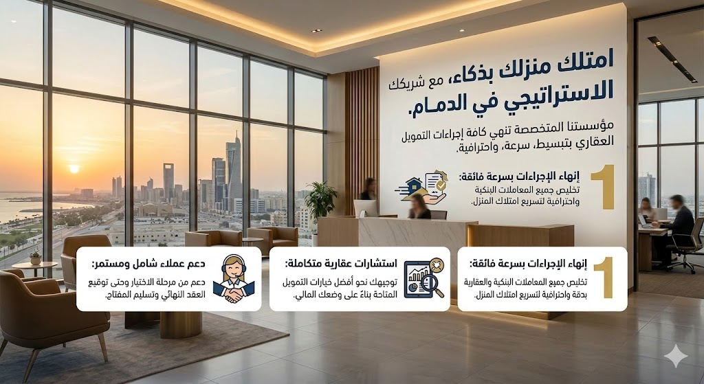 مؤسستنا المتخصصة تنهي كافة إجراءات التمويل العقاري باجراءات بسيطه ، سرعة، واحترافية.